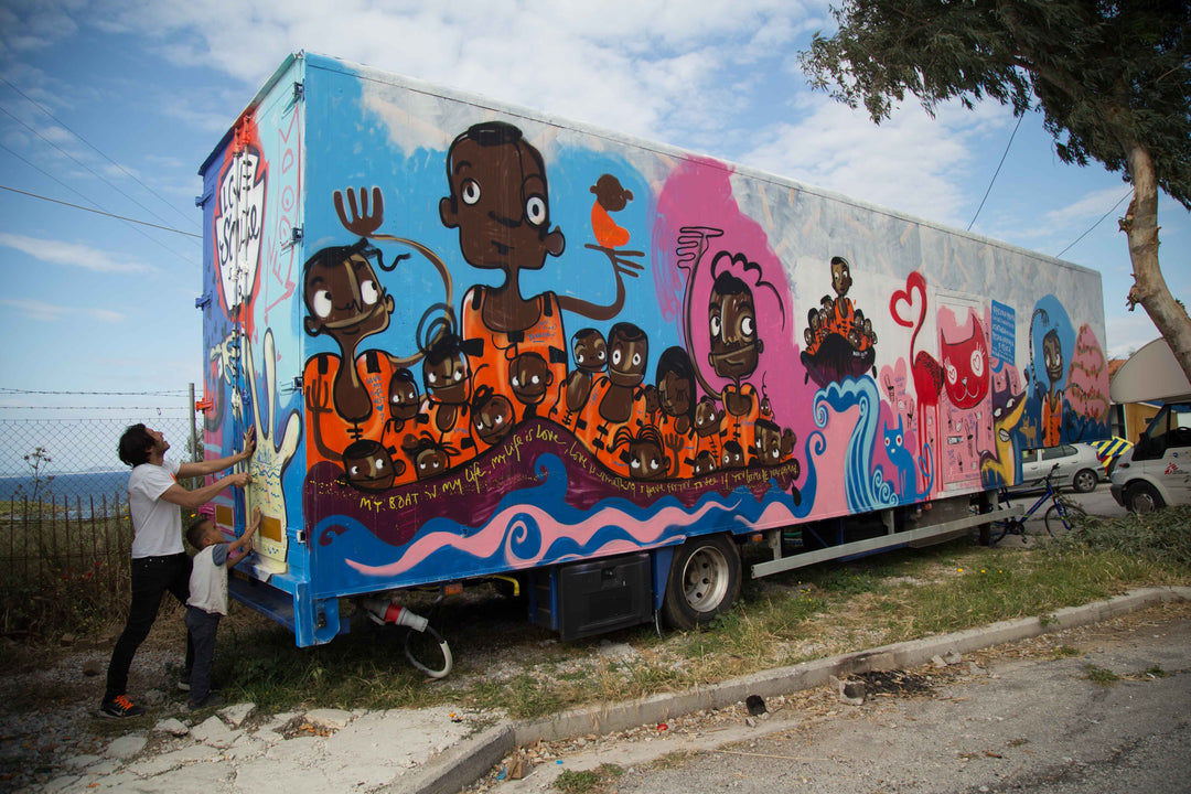 The Giving Food Truck was purchased by the Movement On The Ground team in the Netherlands back in 2015. The truck was then driven to Greece and used as a food distribution truck for refugees on the islands of Levsos. The truck has provided over 400,000 meals since it arrived on the island.